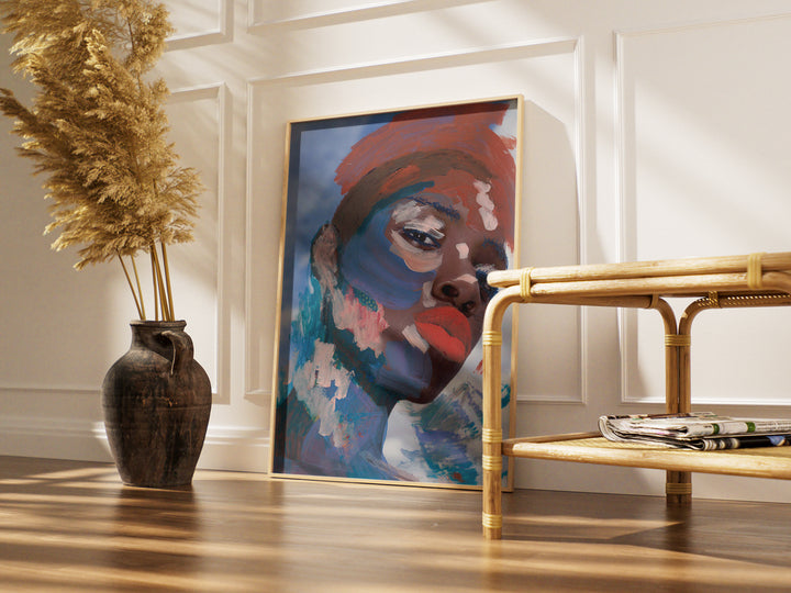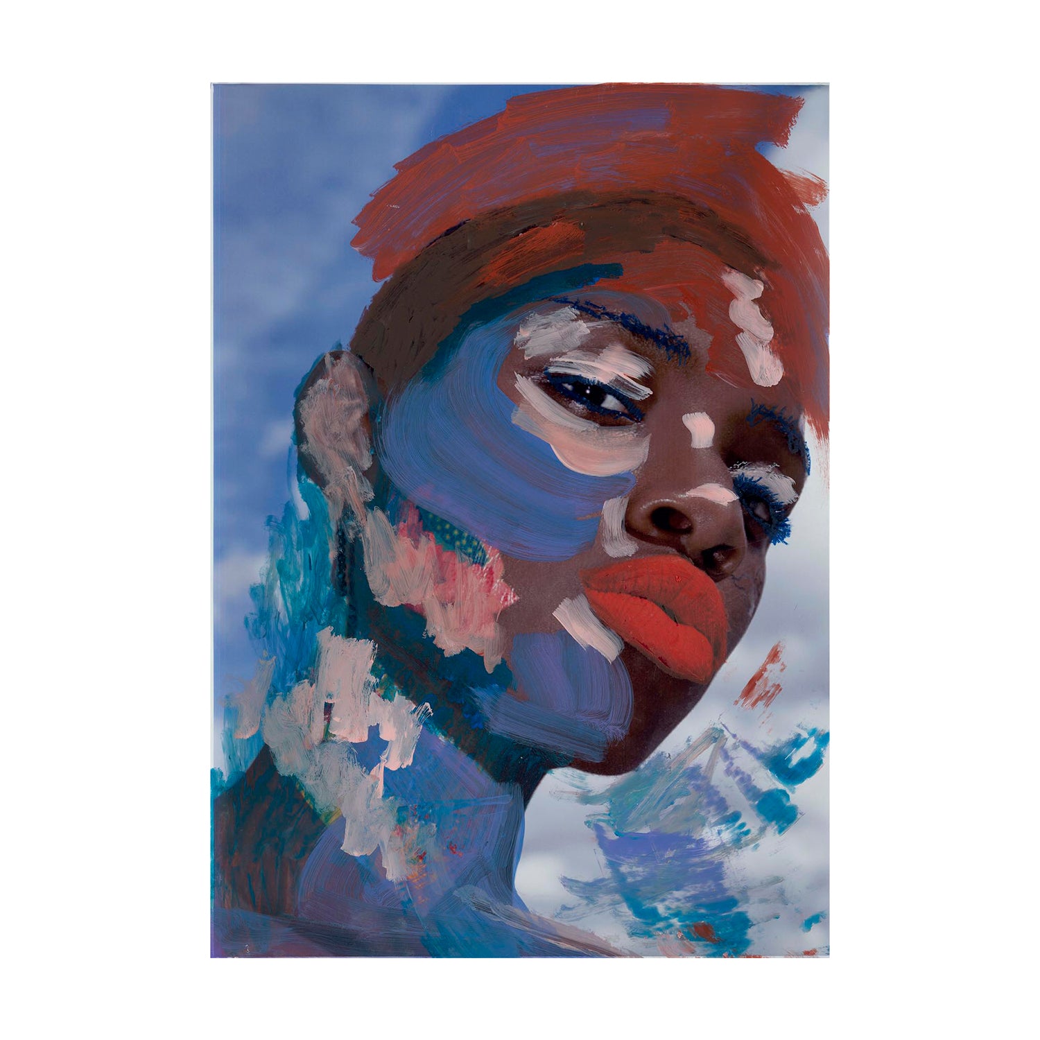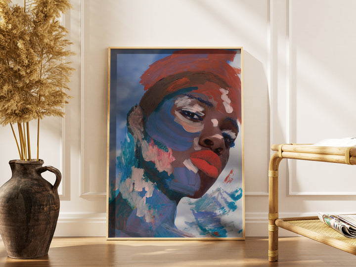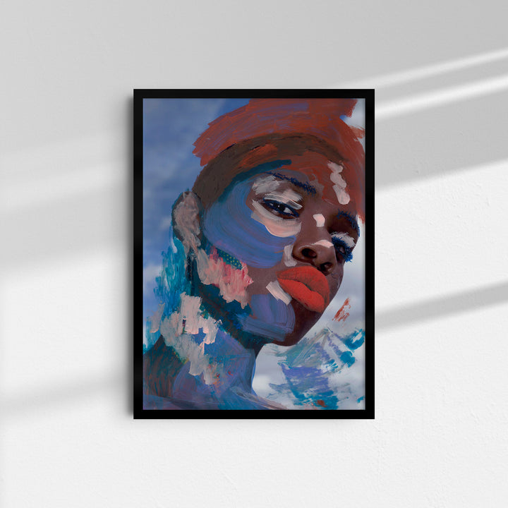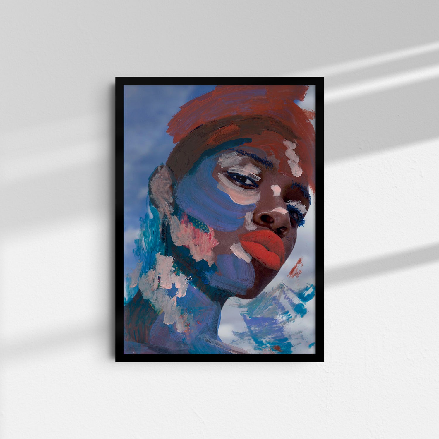 Soft blues and earthy tones wrap around the sitter, merging sky and skin into a single atmosphere. The painted gestures accentuate strength while dissolving certainty, placing the subject in a state between grounding and elevation. It becomes an exploration of quiet power carried upward.