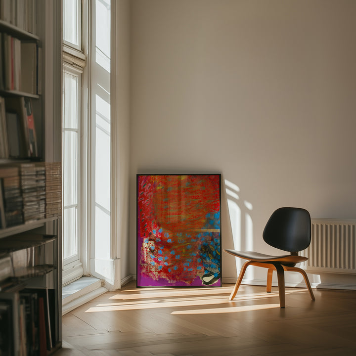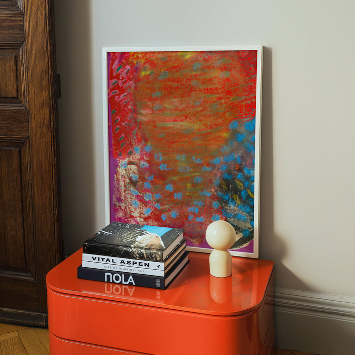 Soft washes of orange, pink, and lilac blur together like heat rising off a field. The gradient shifts gently across the canvas, creating a warm, atmospheric haze. It feels both calming and energising, like a long summer afternoon.