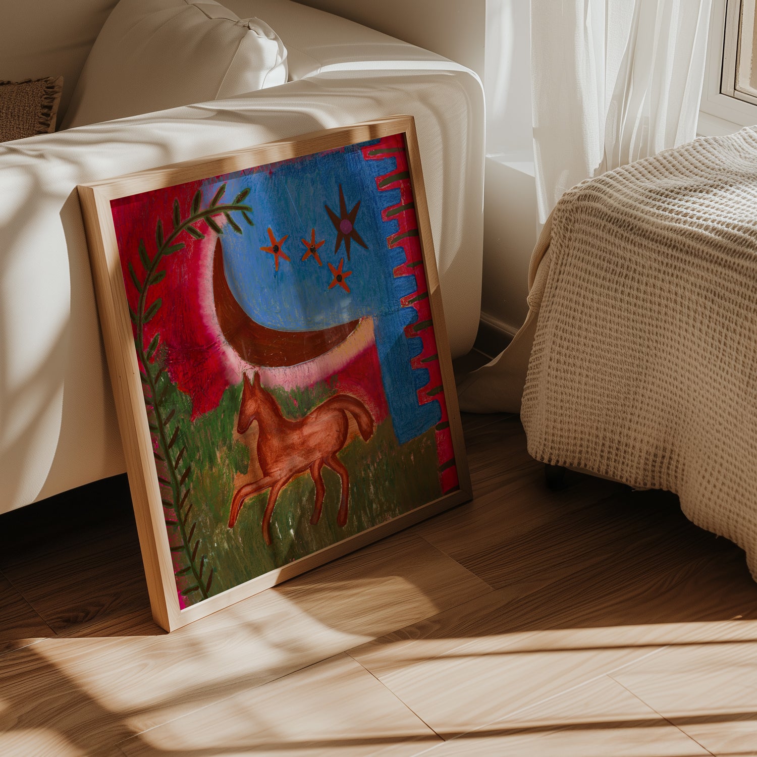 Each piece is framed to gallery standards using hardwood frames and premium clear glass. Choose from three timeless finishes: white, black, or oak. Your artwork arrives ready to hang, finished to last a lifetime.